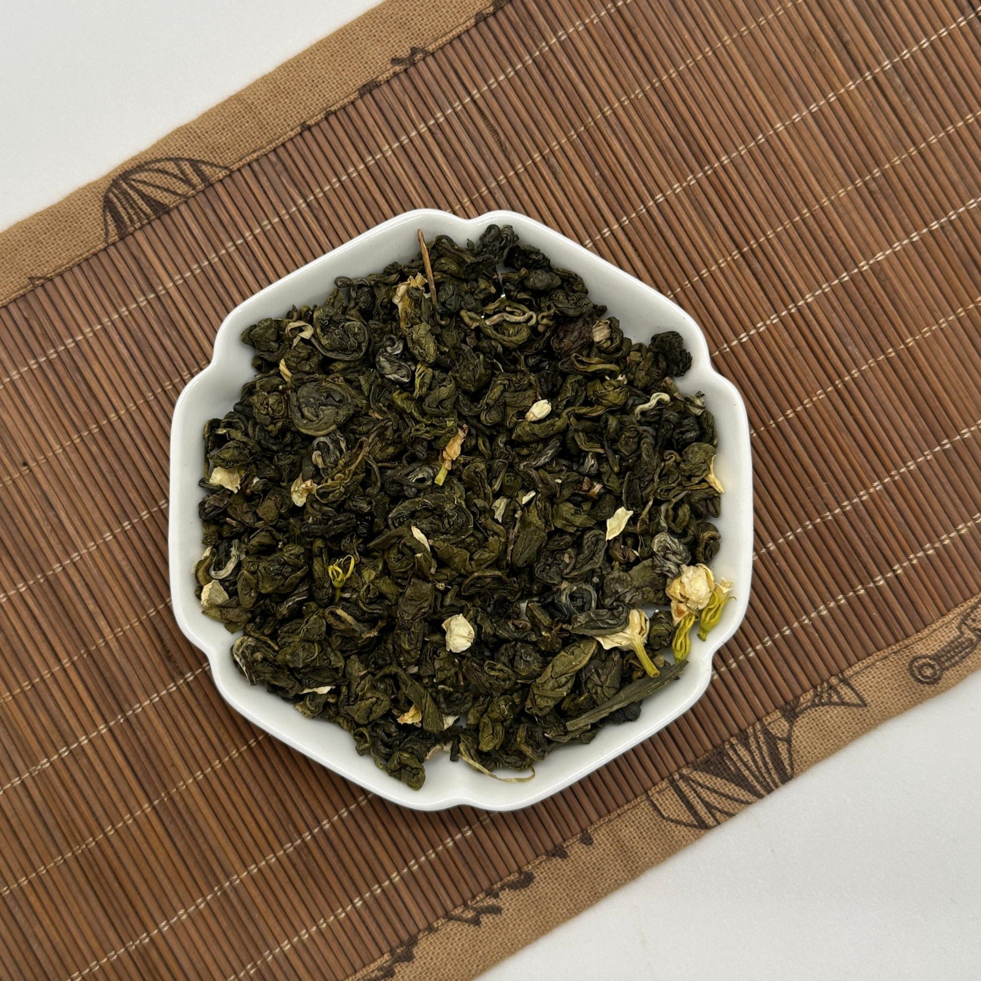 Jasmine Biluochun from Fujian is an exquisite scented green tea that serves both beauty and flavor. An enchanting floral fragrance, balance with the fresh sweetness and vegetal character of high-grade green tea.