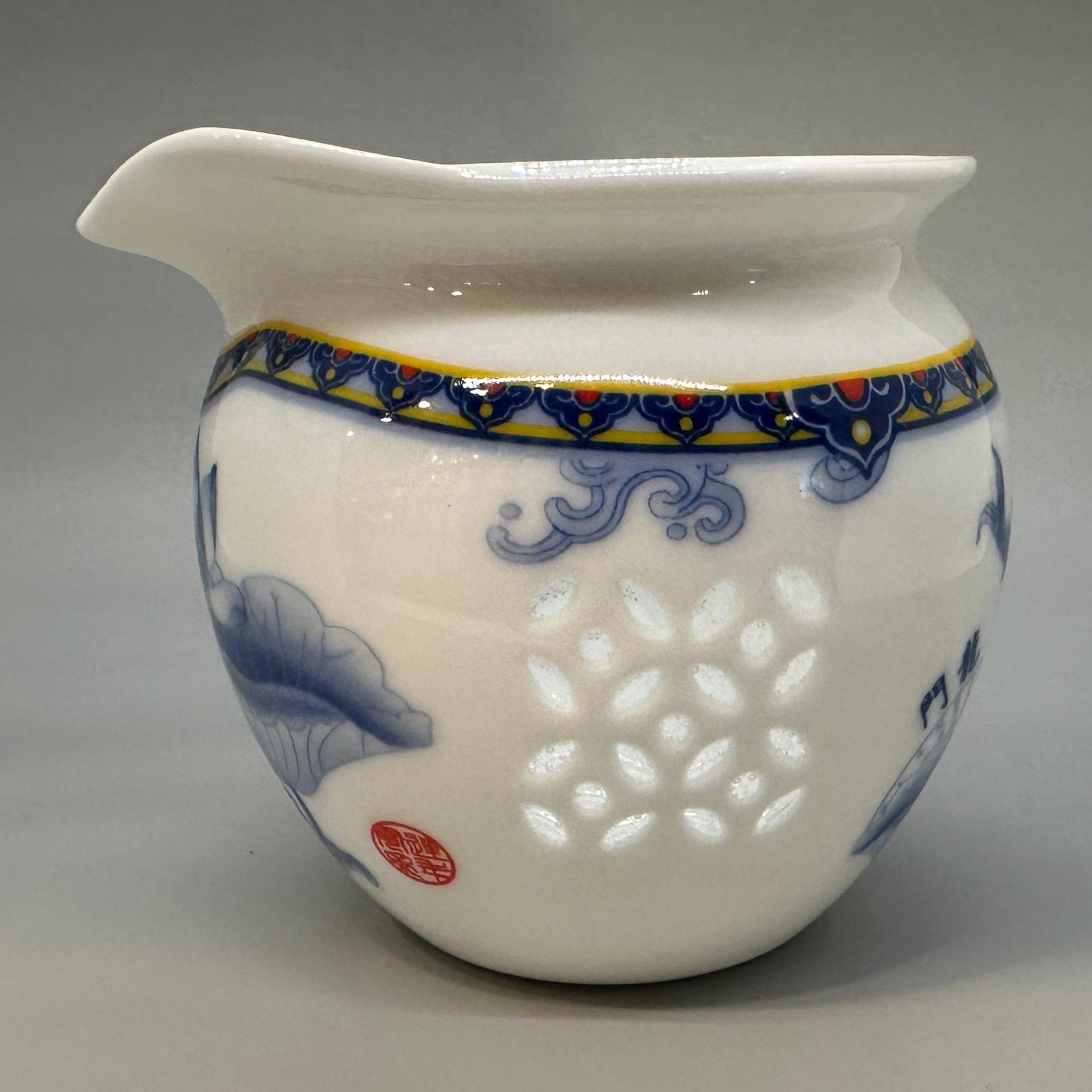 Tea Pitcher is used in traditional Chinese tea ceremonies to ensure an even distribution of tea between multiple cups. After brewing the tea in a teapot, the tea is poured into the fairness cup, which helps to equalize the strength and flavor before serving it into individual cups.